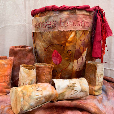 Vessels – Art of the Feminine is a textile project that explores the female form as a vessel, symbolizing both strength and societal expectations placed on women’s bodies. Through sculptural stitched vessels, similar to ancient ceramic pots and urns, the work critiques the pressures of conformity and the historical framing of women’s identities. Each piece is crafted using repurposed materials, intricate stitching, hand dyed fabric, and advanced surface design techniques that integrate traditional and contemporary motifs, symbols, and text that reflect the societal pressures experienced by women throughout various stages of life. By contrasting these historical forms with modern representations of women's experiences, the project addresses contemporary issues such as gender expression, personal and physical autonomy, and women’s empowerment. This feminist artistic exploration invites viewers to reflect on the resilience and complexity of the feminine experience, encourages cross-cultural dialogue, and reflects on the evolving role of women in society, fostering deeper connections between art, history, personal stories and experience.