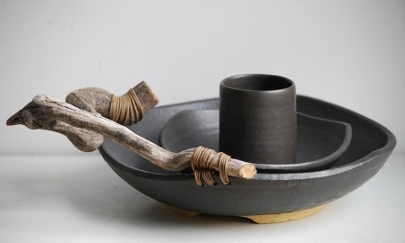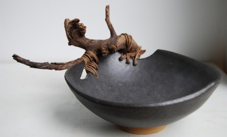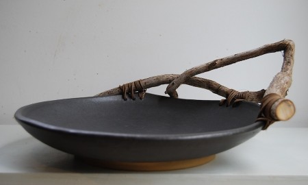 My pots continue to be functional; plates, trays, teapots, pitchers & bowls but now these shapes are made with a specific piece of wood in mind. I'm learning a bit about wood & my work has changed to accommodate the found shapes.