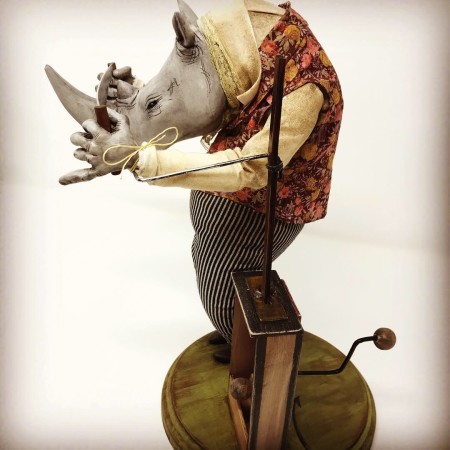 I am a mixed media artist working out of Toronto, Ontario. I make art dolls, puppets, miniatures, automata and birdhouses. I sculpt with papier-mâché, paperclay, some wood, wire..whatever a project calls for. I’m very bad at making profiles.