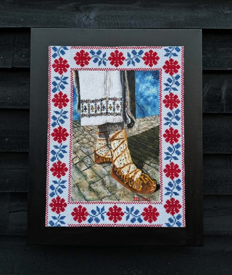 My work often features traditional folk patterns along with oil painting scenes of Romania’s historical architecture and village scenes of the past. I bring the gap between the past and the present using mediums of both canvas as well as apparel.