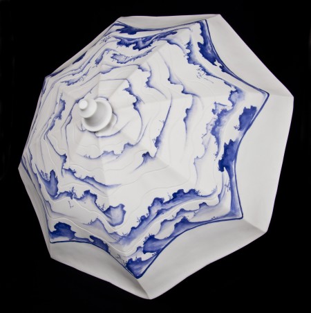 I have worked with clay for over 45 years. My last series of works involved making clay umbrellas using a variety of clay bodies. The one illustrated is porcelain with decals and glazes. The measurements are 56cm x 56cm. They come with a steel shaft which may be used or separated from the form so that the canopy may be hung on a wall. Other examples of my work may also be found on my website. annmortimerceramics.com Enjoy!