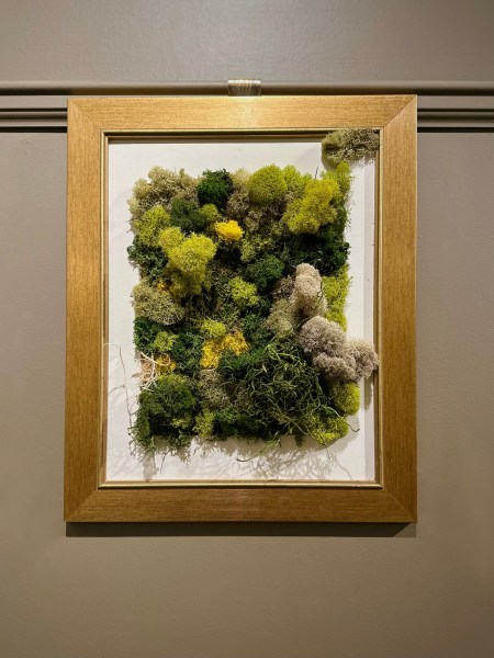 Anna started creating the abstract compositions with multicoloured preserved moss in recycled frames, at the same time installing large wall pieces for businesses and homes around the province. Anna has joined the Crafts Council of British Columbia and had participated in three provincial exhibitions. Anna creates her moss compositions under a brand name # RexandMoss.