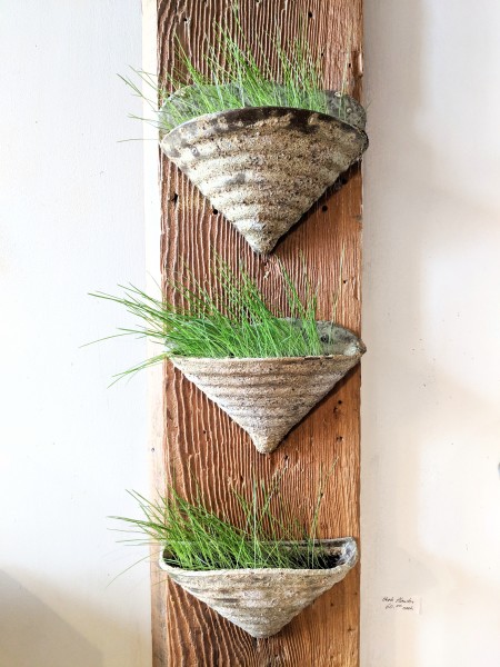 I make bowls, plates/saucers, mugs, tea pots, sushi platters, yarn bowls, and also unique planters in various forms, textures and geometry for those indoor gardeners or those wanting to grow edible greens indoors.
