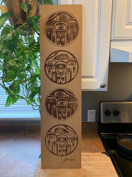 Don Bonner, son of Douglas and Carol Bonner. Member of the Shabot Obaadjiwan First Nation, members of the Bear clan of the Algonquin Nation, came late in life to embrace his ancestry. He has been on Tribal Journeys for three years and looking forward to another journey when they start up again. In all the work he does he looks to blend western and eastern styles of contemporary indigenous art.