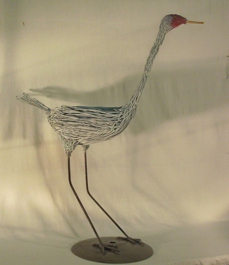 As a self-taught wireworks sculptor, I create convincing, quirky animals and flora from recycled, repurposed found objects, along with minimal new media components. A range of life-sized, miniature and monumental works are among over 1,300 images in private and public collections in all Canadian Provinces, and in at least 24 states and 11 foreign countries. Favorite subjects include burrowing owls, fish, crows, road runners, wolves, coyotes, foxes, Arizona cacti, dragon flies, mosquitoes and grasshoppers. A roadside, life-sized bison in North Battleford Saskatchewan my largest monumental, heritage work, fashioned with recycled barbed wire and farm machinery parts. I have taught and demonstrated wireworks for public schools classes at the University of Saskatchewan Certificate of Art and Design department.