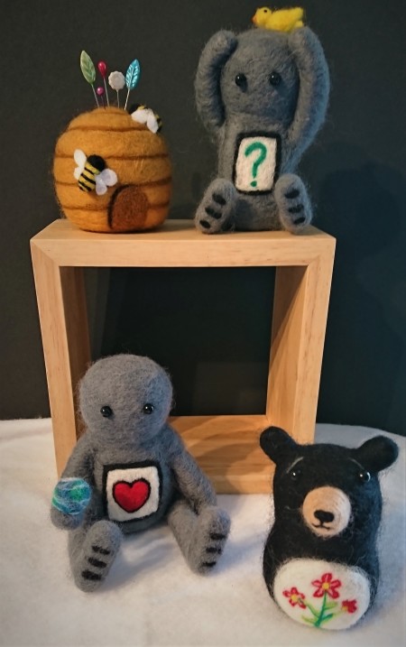 After years of practice, she now showcases her needle felting work at several gallery shops throughout Alberta and Saskatchewan and has been included in a handful of exhibitions. She also teaches her felting skills to others through workshops and demonstrations.