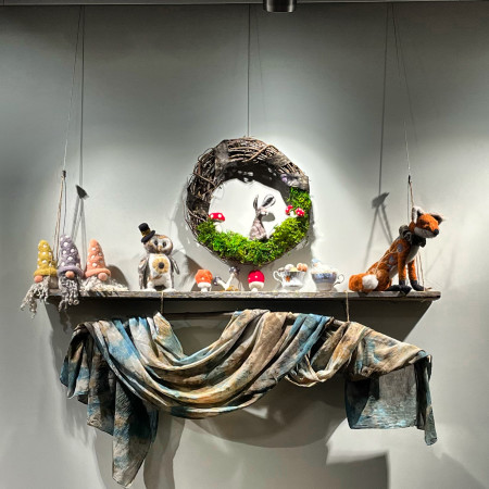 Jamie Lynn Bowen is a fibre and textile artist who recently relocated to the North Coast of British Columbia. She has spent most of her life living in the concrete confines of City life and is now spending her time exploring the forest while researching the plant and fungi world for use in her natural dye practice. She uses local wools, natural fibres and local dyes to create her art through needle felting, stitch, knitting, weaving and spinning. Her creative life extends to her small business of designing needle felting kits and her non profit practice where she and her partner create opportunities for artists to show their work and connect with local community members. She strives to live a creative life that leaves a small footprint on our planet and shares her passion for the arts through workshops and connecting with her community.