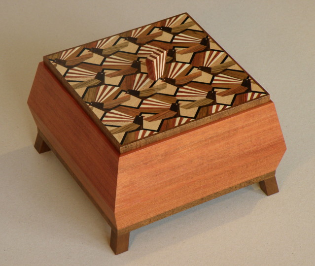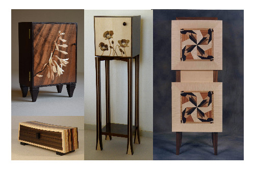 Ever since their first collaborative effort as students in a Geography class at McGill University, Talar and Jean-Claude have enjoyed working together. Upon their arrival in Calgary in 1981 they both found work in a drafting firm serving the energy sector. When the difficult economic conditions of that period necessitated a career change, it seemed like the perfect opportunity to pursue self-employment in the crafts, an area that had always held their interest. Using wood was the ideal choice as they could combine Jean-Claude’s ability in woodworking and Talar’s passion for marquetry and design. They started building furniture as well as boxes that featured marquetry. Over the past twenty-five years they have been active members of the Alberta Craft Council and the Southern Alberta Woodworking Society and have participated in many of their juried exhibitions. Their work has been shown and sold in galleries across Alberta as well as in Toronto and Montreal.
