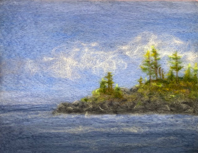 Experience the captivating charm of lush West Coast woodlands and mesmerizing coastal scenes, expressed though natural wool needle-felted landscapes.