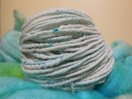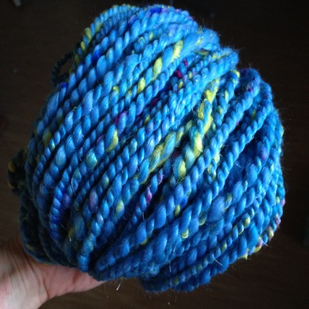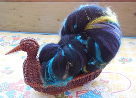 Kara Perpelitz discovered handspun yarns in 2008 and has since fallen down a very soft and warm rabbit hole into the world of handspun yarns and fibre arts. In 2010 she started the Master Spinner Program offered by Olds College in Olds, Alberta. She is currently in her 5th year of the 6 year program. Working out of her studio and home in Goodsoil, she creates not only handspun yarns, but fibre blends and dyed fibres for spinning, felted and dyed wearables and home décor.