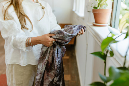 Laurie combines her love of natural fibers and local plant dyes to create wearable art. She is constantly experimenting and finds inspiration in the wild places: mountain tops; small, quiet islands; places you can’t get to by road.
