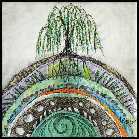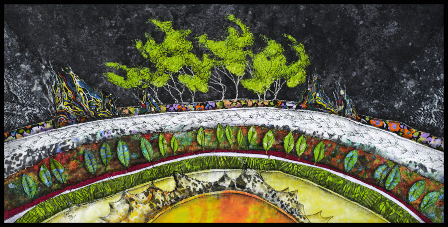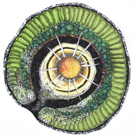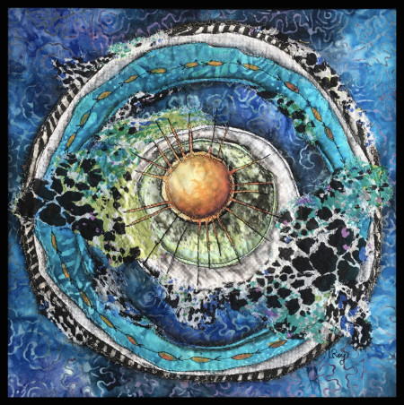Using a sewing machine, fabric, thread, distinctive appliqué techniques and an evolving visual vocabulary, I strive to interpret and illustrate biological organisms and systems. My intention is to arouse emotional connection by shining a warm light on crucial unseen forces.