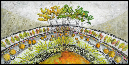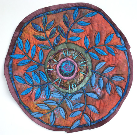 In my work I draw upon my background in science and subsequent research to create images in fabric which evoke the strong connection I feel with the natural world. Since fabric is itself a plant or animal product, it is an ideal material for expressing and capturing the attributes of natural forms, and the techniques I use mirror processes that bring order to diverse and humble materials.
