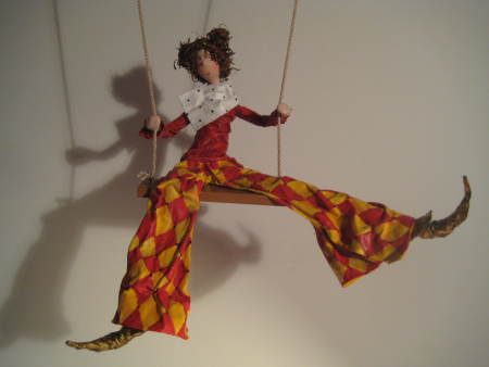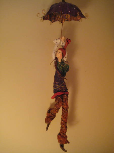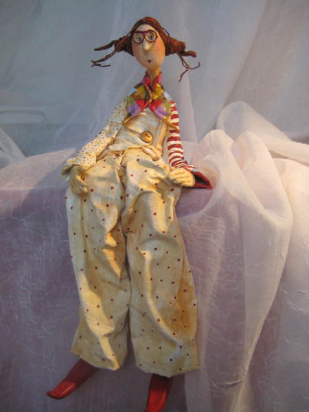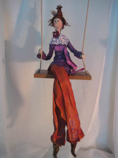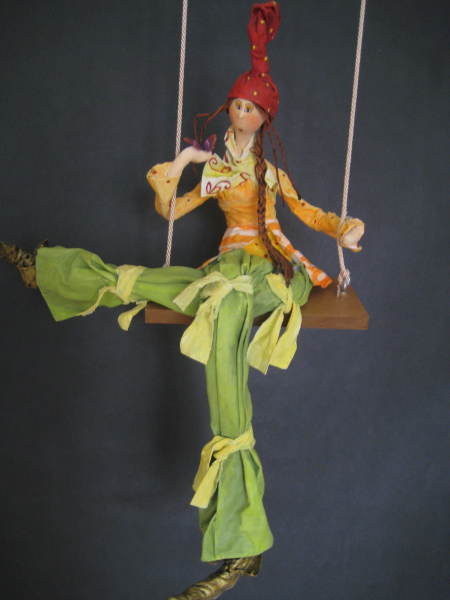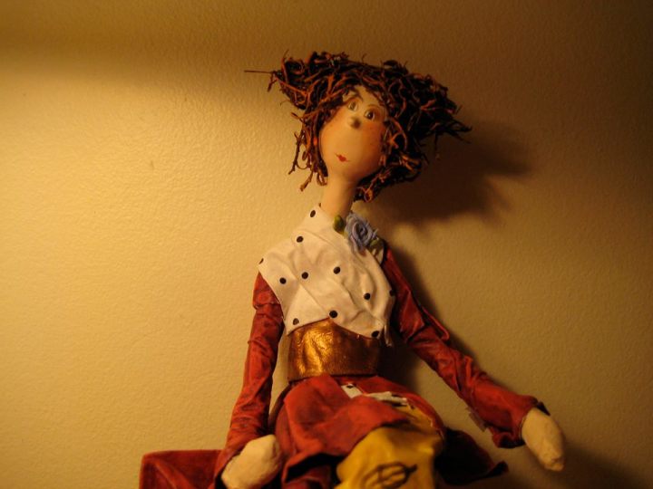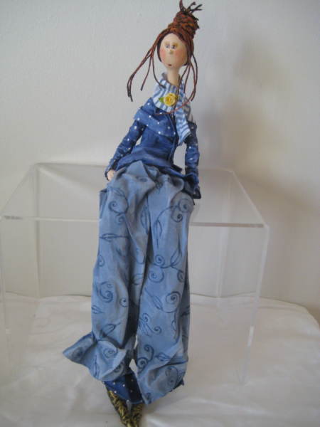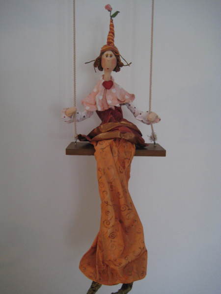 Art dolls made of fabric soaked in an liquid hardener and entirely painted with acrylic. Dimensions: 12" to 14" and the 6" large.