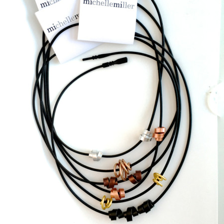 I use wire like a pencil or a charcoal. Drawing simple lines or creating collages with my bare hands or the use of some pliers. A variety of different beads and other familiar household items become subjects within. My materials vary from natural to man made. Inspiration comes from the theater of everyday. My work is playful and alive. It is created through a response to the world and the people around me. Jewellery is intimate and can act as a conduit between myself and my community.