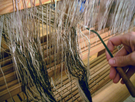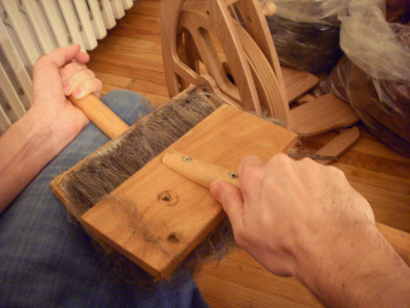 Owen Brush is a spinner and weaver who creates entirely handmade textiles. Working from scratch, he spins the yarn, designs the patterns, and weaves the fabric.