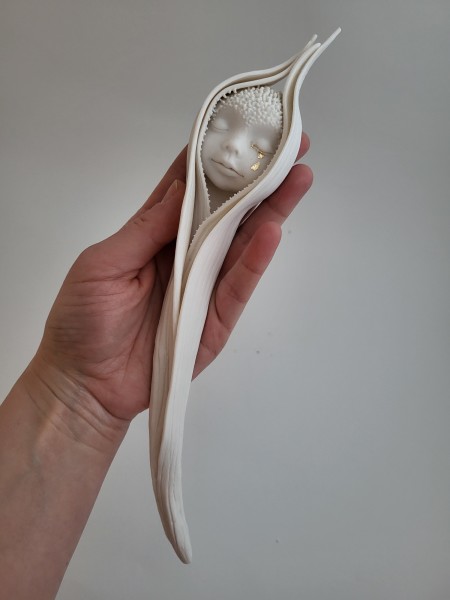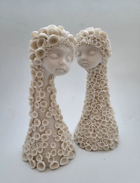 Porcelain connects me to both history and the Mother Earth. Its ingredients — kaolin, feldspar, silica — are ancient materials shaped by fire and time. My growing interest in Parian porcelain and early ceramic histories deepens this connection: I see my work as a dialogue with the past, reawakening forgotten material languages through contemporary hands. I often incorporate found and vintage objects into my sculptures — fragments that once lived other lives. In giving them new form, I honor their memory and extend their lifespan, transforming what might be discarded into something luminous.