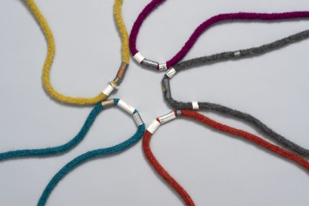 Tricia Wasney is a jewellery-based artist living in Winnipeg. She has a BA in Film Studies and a Master’s degree in Landscape Architecture. Tricia learned jewellery-making skills in Winnipeg and New York City and has participated in artist residencies in Belfast, Northern Ireland and Churchill, Manitoba. In her jewellery Tricia uses sterling silver, employing various techniques to achieve form, texture and colour, often incorporating other metals, wool, paper, bones and organic materials. Having grown up on a gloriously messy small farm, much of her work is informed by landscape and memory, resulting in sometimes poignant and sometimes playful constructions. Tricia recently received grants from the Manitoba Arts Council and the Winnipeg Arts Council to create jewellery-based work exploring family history, the landscape and implications of climate change. For Tricia, jewellery is at once the most private and the most public of art forms, revealing our relationships and affiliations, our desires and our anxieties, and our histories.